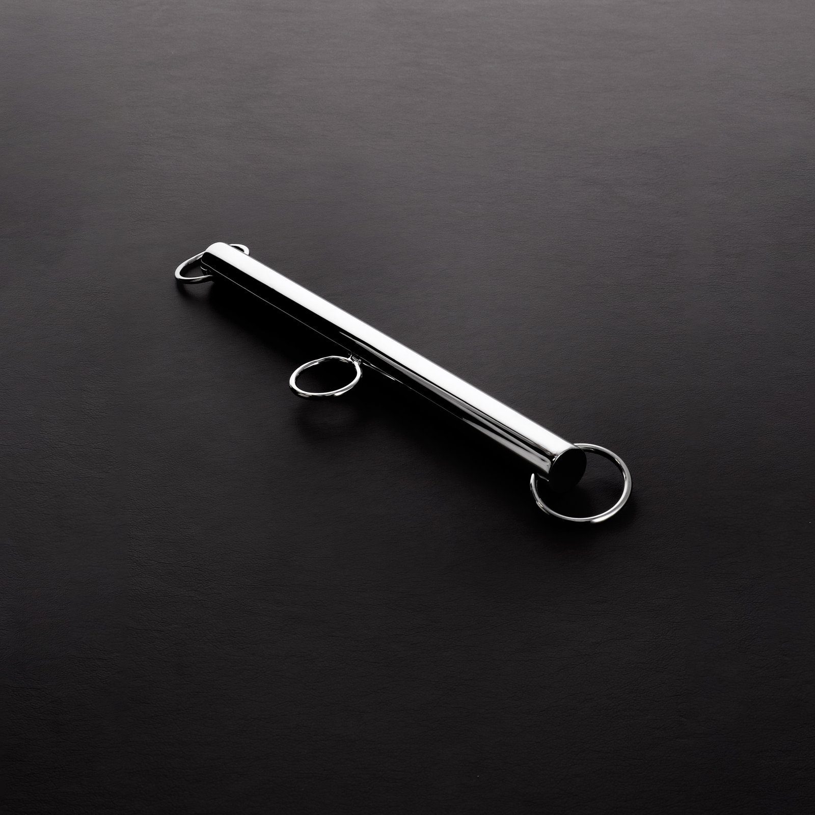“Feita de aço inoxidável de alta qualidade com anéis em ambos os lados e um anel no centro da barra.Sem ftalatos SimMaterial Aço InoxidávelDimensões: 32,5 cm de comprimento.”