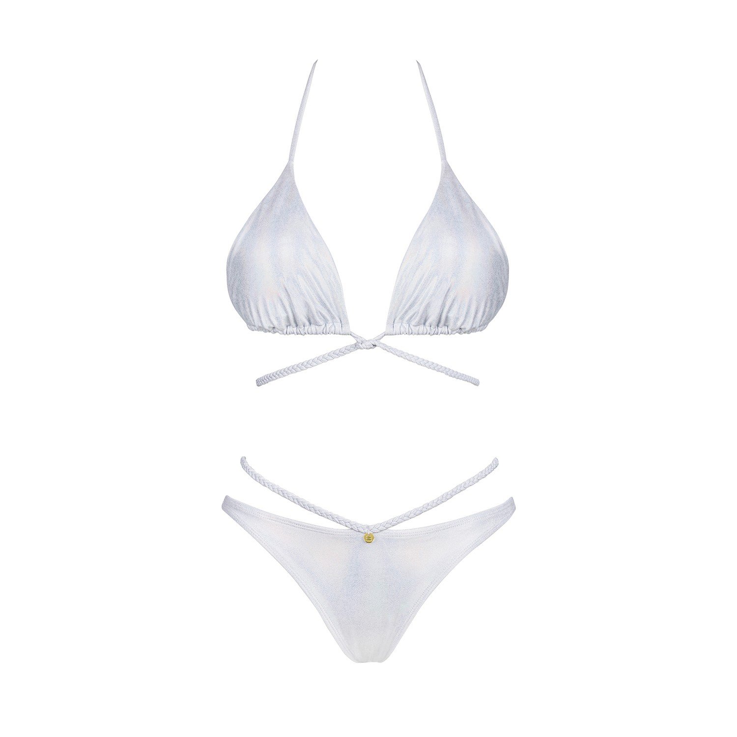 “O que pode fazer o sensual biquíni Blancossa? O branco tentador vai aumentar perfeitamente a cor do seu bronzeado de férias, e o corte espantoso vai realçar as suas formas femininas e cuidar da forma fenomenal da figura! Tenciona passar as suas férias debaixo das palmeiras, acompanhada por uma bebida de guarda-chuva? Traga este biquíni consigo, e garantimos-lhe que será muito mais quente!Conheça os detalhes:- biquíni sensual Blancossa de branco: sutiã e cuecas incluídos- material brilhante – bronzeado melhorado!- copas triangulares ajustáveis – belo busto!- tiras debaixo do sutiã e sobre as ancas – formas realçadas- laçado confortável à volta do pescoço – garantia de conforto- laçado duplo nas costas – um desenho único e ajuste perfeito- material flexível e agradável para o corpo (82% poliamida, 18% elastano; revestimento: 95% poliéster, 5% elastano)”