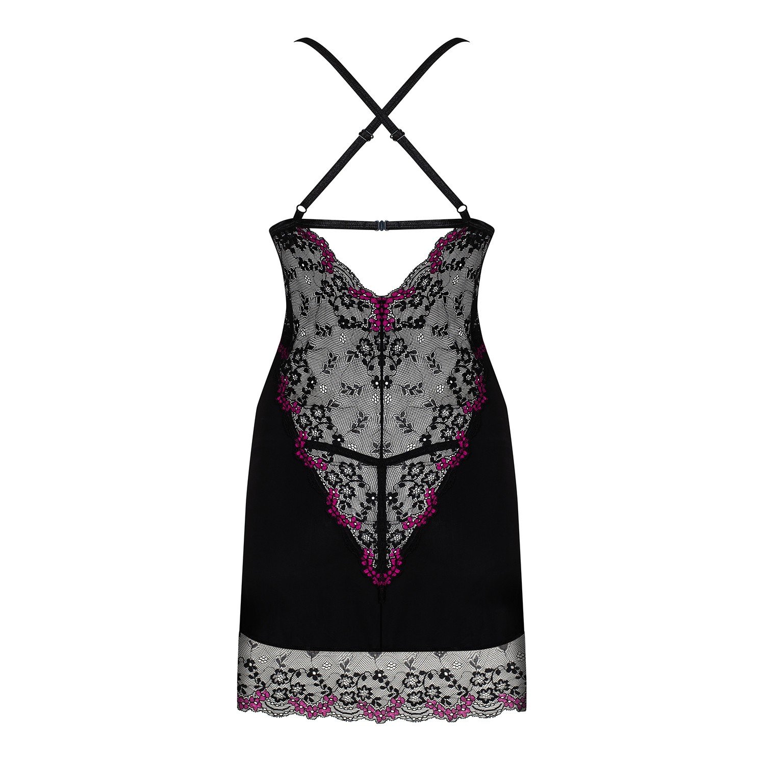 “A camisa de noite preta Vanessme é uma combinação ideal de feminilidade subtil com picante refinada. Os detalhes sedutores sob a forma de inserções de renda e um recorte nas costas vão fazê-la sentir-se super sensual, mas também confortável. O Vanessme é feito de material elástico que garante um elevado conforto de utilização.Conheça os detalhes:- conjunto preto com detalhes em bordeaux inclui camisa de noite e tanga- corte de renda sedutora realça a parte de trás- corte desenfreado que faz sobressair os seus trunfos- ajuste ideal graças a alças de ombro ajustáveis- material agradável, flexível, para abraçar o corpo (90% poliamida, 10% elastano)”