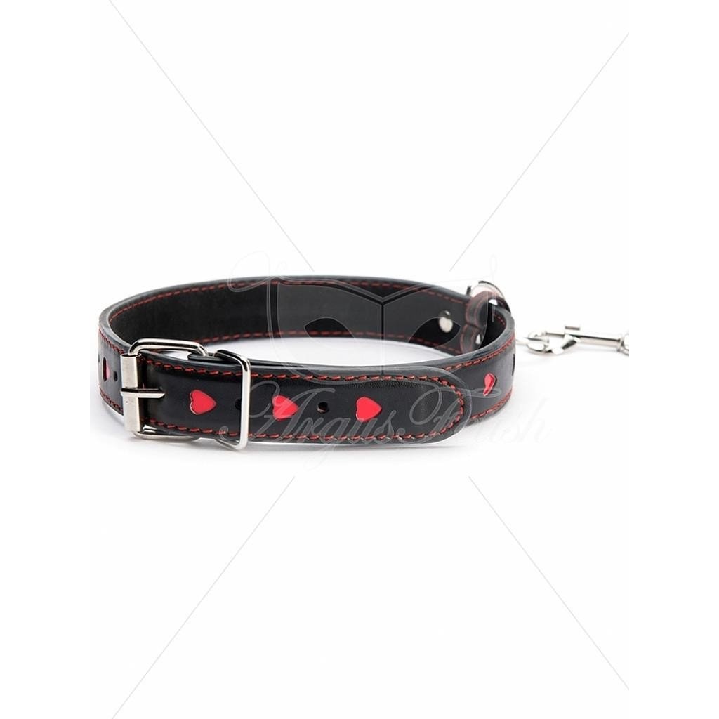 “Este colar ajustável é a escolha perfeita para quem deseja explorar novos horizontes de prazer e estilo. Decorado com delicados corações vermelhos, esta peça combina elegância e sedução de forma única. A alça removível permite ainda mais possibilidades de personalização da sua experiência.Fabricado em couro sintético de elevada qualidade e metal livre de níquel, é duradouro, confortável e seguro para a pele. O fecho em fivela metálica permite um ajuste fácil e preciso da largura, adaptando-se perfeitamente ao seu pescoço.Com um design unissexo, este modelo é ideal para momentos de diversão e intensidade, proporcionando prazer tanto a quem o usa como a quem observa. É perfeito para quem quer incorporar acessórios ousados e sensuais nas suas brincadeiras.Cor: Preto. Materiais: Couro PU e metal sem níquel”