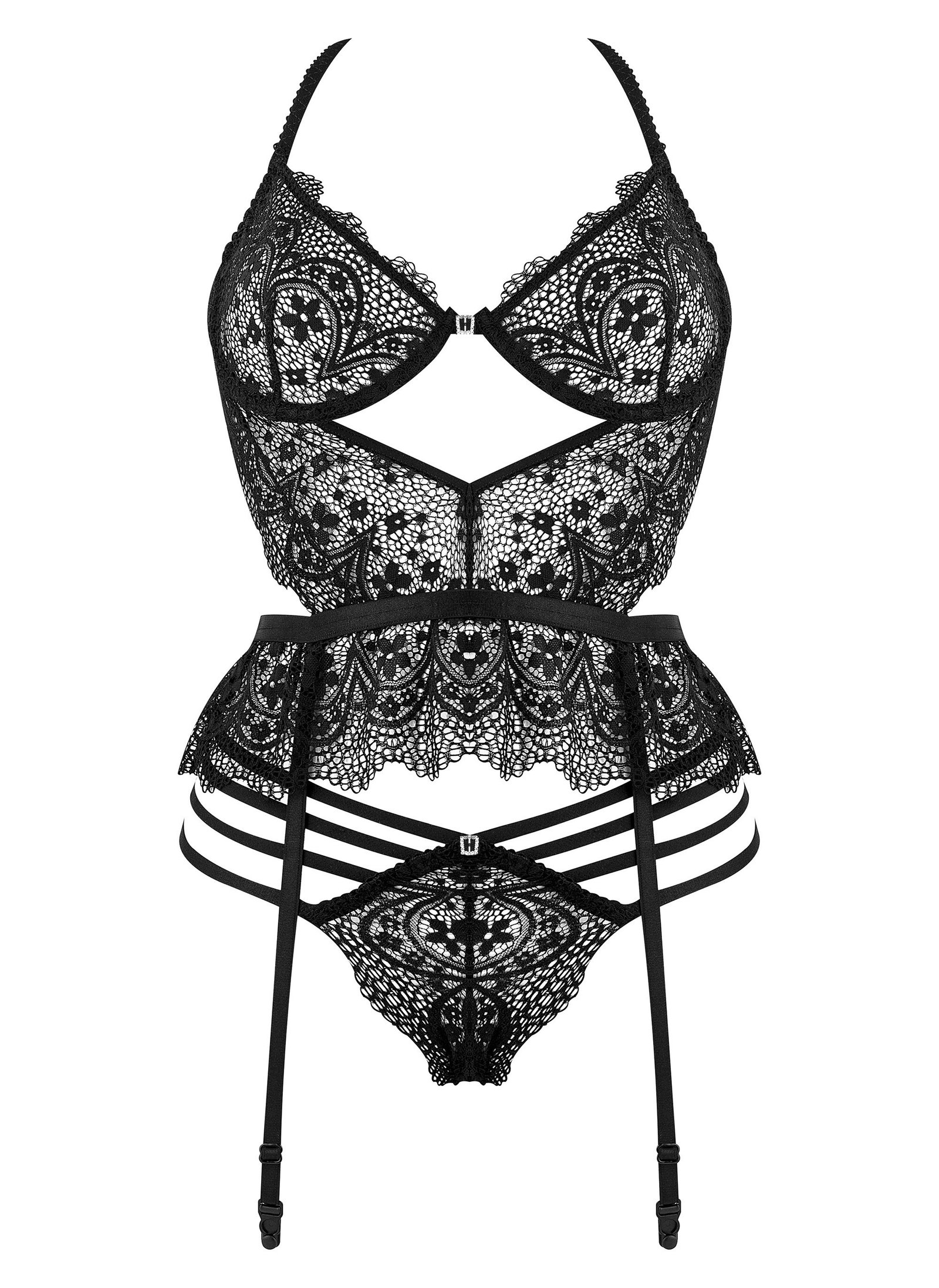 “Apresentamos o conjunto Lace Temptation – um conjunto de lingerie único para mulheres que querem sentir-se deslumbrantes e sensuais. A renda e os detalhes intrincadamente trabalhados tornam este conjunto cheio de elegância e classe, ao mesmo tempo que cativa com a sua sensualidade subtil.Principais caraterísticas do produto:Renda intrincadamente adornada: O requintado padrão de renda dá um toque de luxo ao conjunto e os recortes realçam as curvas femininas.Alças e recortes sensuais: Elementos de design originais, como as alças e os recortes, criam um visual único, acrescentando um toque de ousadia.Tanga incluída: O conjunto é completado com uma tanga que combina perfeitamente com o look, criando um estilo completo e sedutor.Perfeito para oferecer! O Conjunto Lace Temptation é uma excelente escolha para o homem que pretende presentear a sua parceira com um presente elegante e sensual. O conjunto vem embalado numa caixa elegante, pronto para ser oferecido em qualquer ocasião especial.Tamanhos: S/M, L/XL e 2XL/3XLTamanho S/M: (Seios: 81-91 cm, B-C, Cintura: 56-71 cm, Anca: 85-97 cm)Tamanho L/XL: (Peitos: 91-107 cm, C-D, Cintura: 71-91 cm, Anca: 97-112 cm)Tamanho 2XL/3XL: (Peitos: 107-120 cm, D-E, Cintura: 91-104 cm, Anca: 110-126 cm)Material: 85% poliamida, 10% elastano, 5% poliéster”